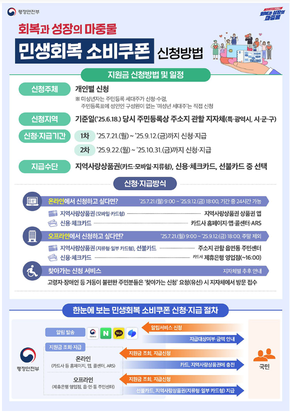 1차: '25.7.21.(월) ~ '25.9.12.(금)까지 신청·지급.