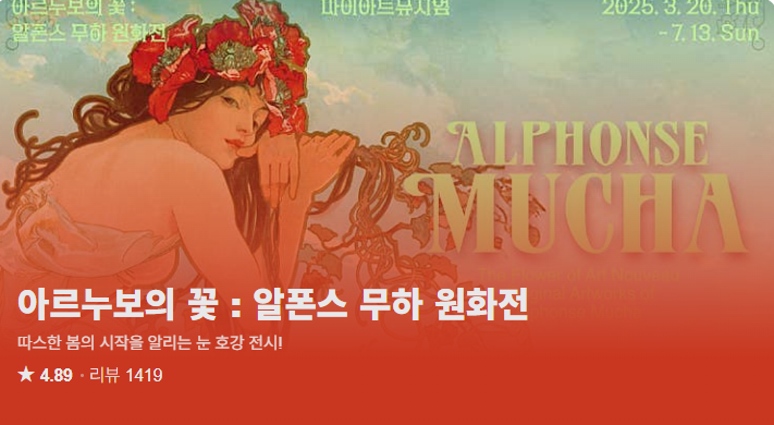 - 추천 이유: 아르누보 거장의 원화로 보는 무하의 우아한 선들과 화려한 색채, 포토존 가득한 전시!